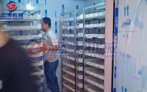 將蒜片均勻鋪放在不銹鋼物料托盤上,溫度控制在55-60°C左右,烘6-8小時。烘干過程中,注意蒜片烘干房的干燥,熱風(fēng)量和排濕氣量要穩(wěn)定,到后期干燥時,由于大蒜纖維細密且蒜片中液體黏稠,使蒜片水分遷移蒸發(fā)變得緩慢,直至蒜片干燥至含水率約為4-6%以內(nèi)即完成干燥。烘干期間須嚴格控制好時間和溫度,以免干燥時間過長,溫度過高,使蒜片干色澤、外形及營養(yǎng)價值受損,影響蒜片的品質(zhì)。