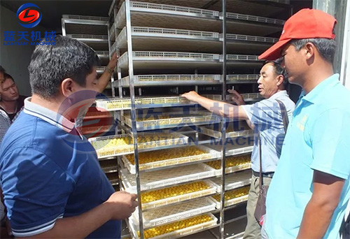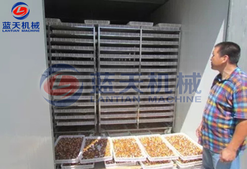 2)按照7P烘干除濕一體主機配置30立方烘干房,可放入物料車6臺,每次可以烘新鮮杏子2000斤,杏子干鮮比接近5:1。