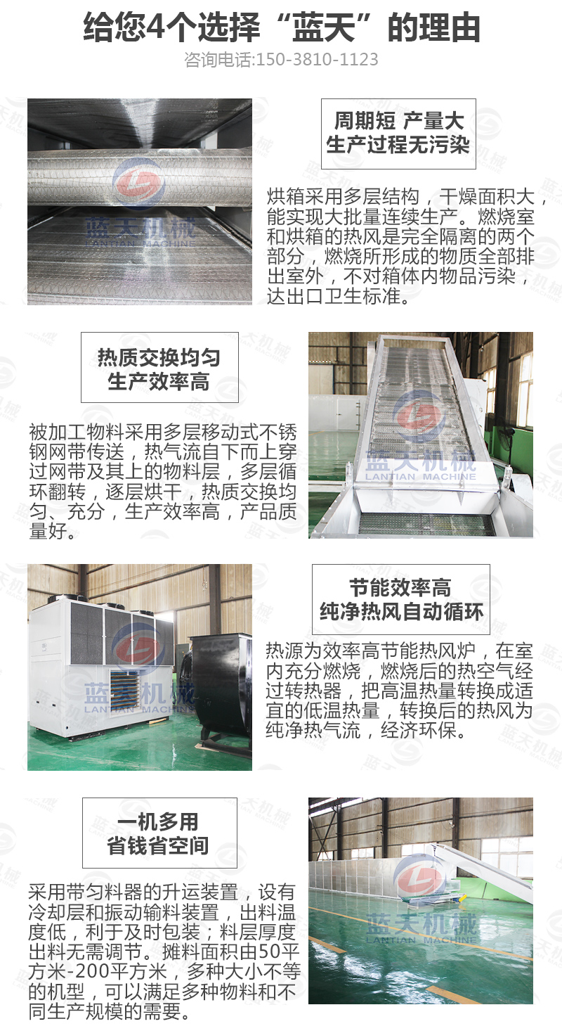 可烘干產(chǎn)量大:可大批量24小時連續(xù)式烘干處理,日加工產(chǎn)量可達到幾十噸,適合集中化烘干加工模式;