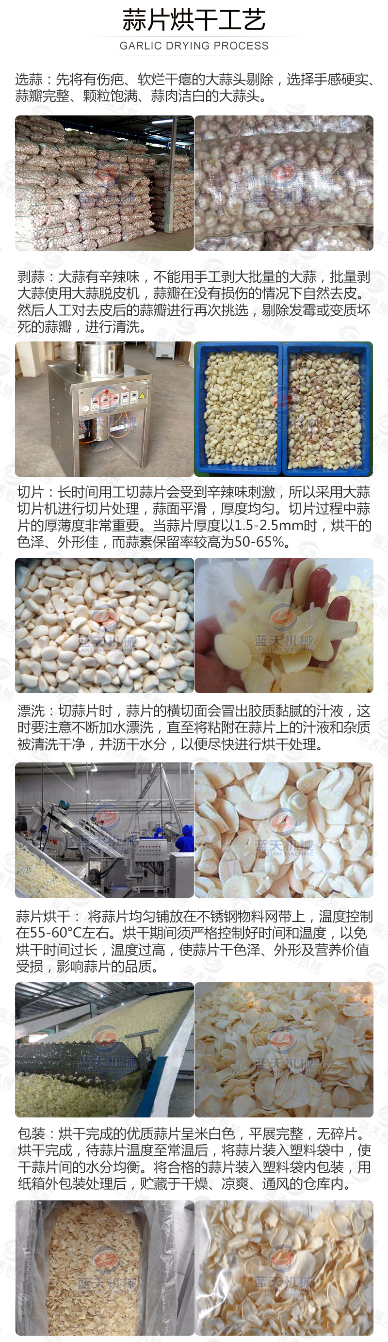 【帶式蒜片烘干機(jī)烘干蒜片步驟:】