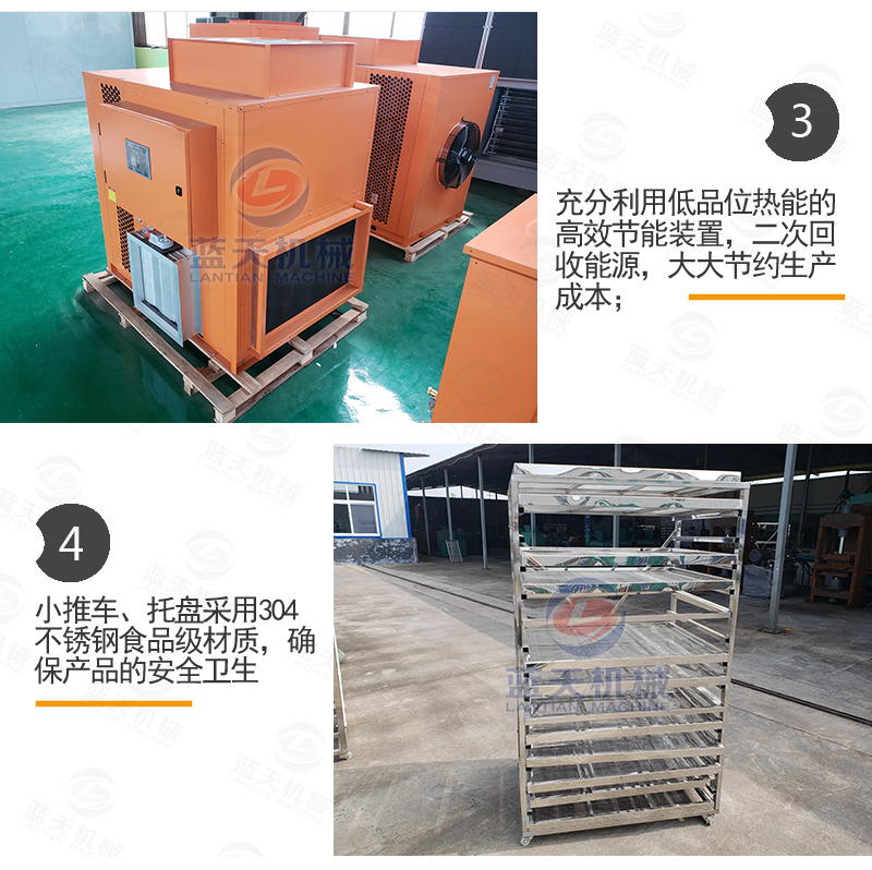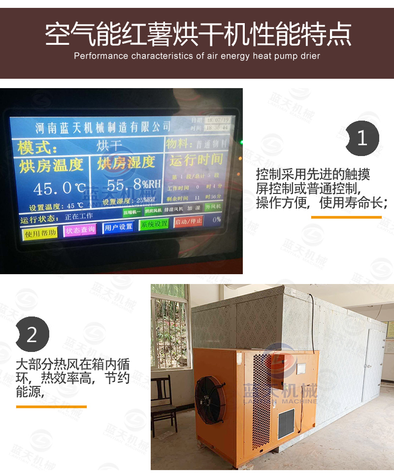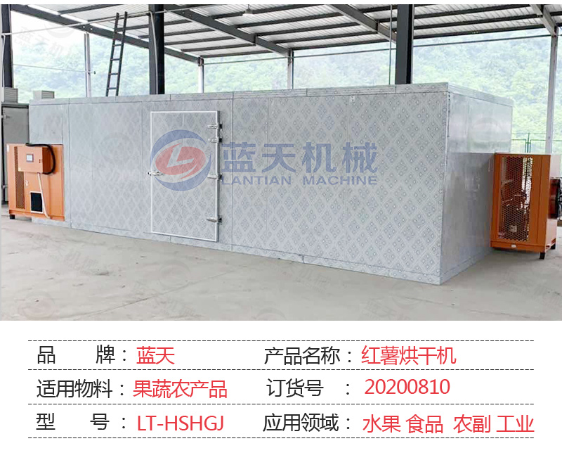 干燥烘干地瓜。干燥烘干地瓜有兩種辦法,一種是通過日曬的辦法,一般不下雨的情況下,在陽光下曬4-5天即可,要定時翻轉(zhuǎn)。另一種辦法是利用地瓜干烘干設(shè)備進(jìn)行烘干地瓜,這種辦法適合量大,且不受天氣影響。開啟地瓜干烘干設(shè)備。將已經(jīng)擺好托盤的地瓜推進(jìn)去地瓜干烘干機(jī)內(nèi),關(guān)閉房門。通過智能控制面板,設(shè)置好溫度和濕度,一般設(shè)置為四個階段,一階段設(shè)定45℃,定時2~3小時。二階段溫度設(shè)定50℃,定時3小時。三階段溫度設(shè)定60℃,定時3小時。四階段溫度設(shè)定70℃,定時3小時。一般用時12個小時即可。