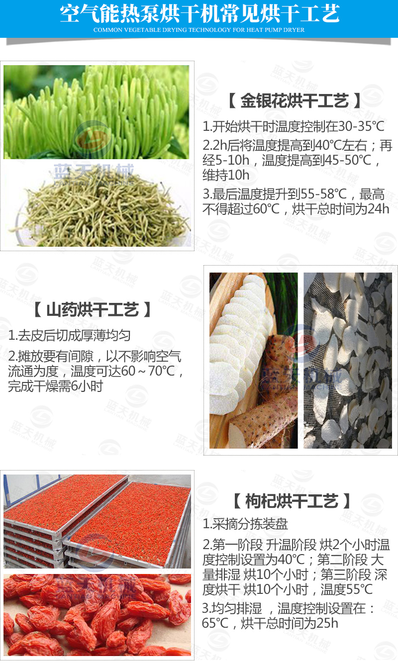 空氣能熱泵烘干機溫度范圍在15℃-80℃,烘干溫度45℃-65℃區(qū)間省電,只要15℃-80℃溫度區(qū)間物料都是可以烘干,合適烘干的物料主要有各種藥材、水果,蔬菜、海鮮、食品(臘腸臘肉、面條、掛面等)、農產品、鮮花、茶葉、木材、工業(yè)品(石膏、木炭、印刷)、污泥等等。